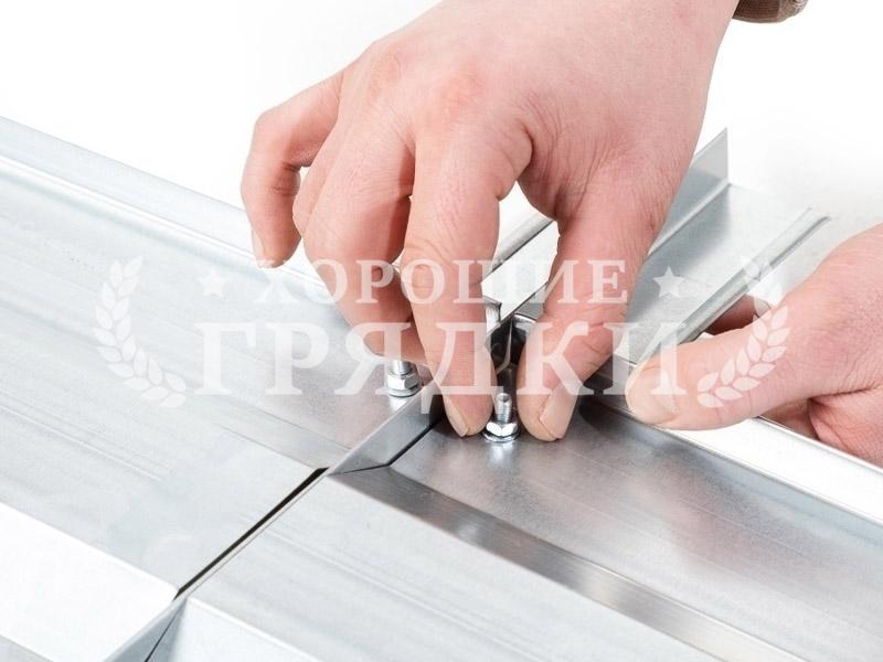 Соедините борта с ножками и зафиксируйте стяжкой — грядка готова. Крепеж в комплекте.